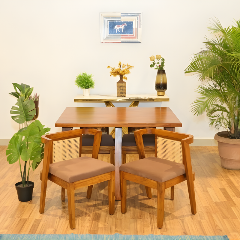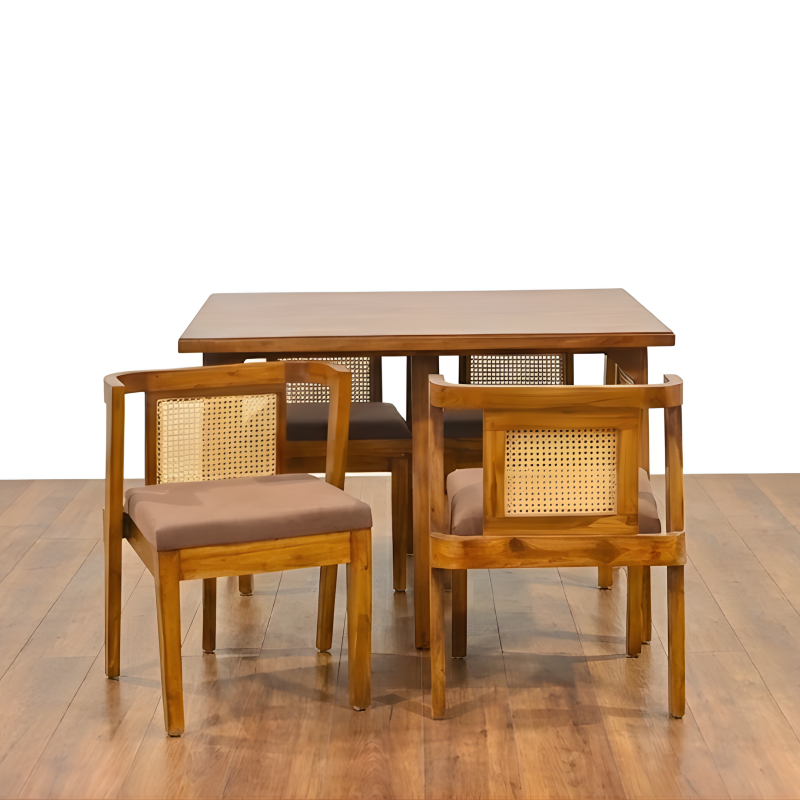Introducing the 4-Seater Wicker Space Saver Teakwood Dining Set, a perfect blend of style, functionality, and comfort designed for modern living spaces. This dining set is ideal for those who appreciate the beauty of natural materials while needing to maximize their space.Key Features: